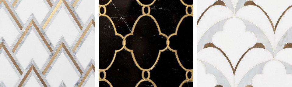 Art deco designs for your home mosaic.. .. This collection features our hairline joints which give these mosaics the most luxurious appearance due to the elimination of wide, clunky joints prevalent in common mosaics.